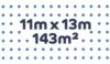 最大散水範囲:11m×13m(約143平米) ※水圧によって最大散水範囲は変わります。また水圧が弱いと回転しない場合がございます。