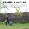 散水が終わった後の片付けもタイヤがついているので保管スペースまでの移動も楽です。伸縮ハンドルやキックスタンド・巻き取りハンドルが折り畳めてコンパクトに、場所をとらずに保管できます。