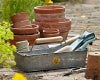 このガルバナイズド・トラッグは、ハサミ、スコップ、 手袋などの必要なアイテムを入れてお庭へ持ち運びできます。
