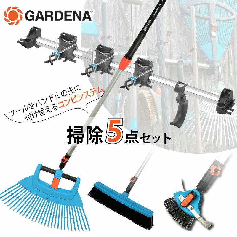 ガルデナのコンビシステムは、1本のハンドルに、用途に合わせてさまざまなツールを付け替えられる便利なシステムです。