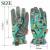 Flora&Faunaコレクションのミントグリーンの背景に可憐な小鳥と繊細な葉が際立つ華やかなデザインの女性用手袋です。