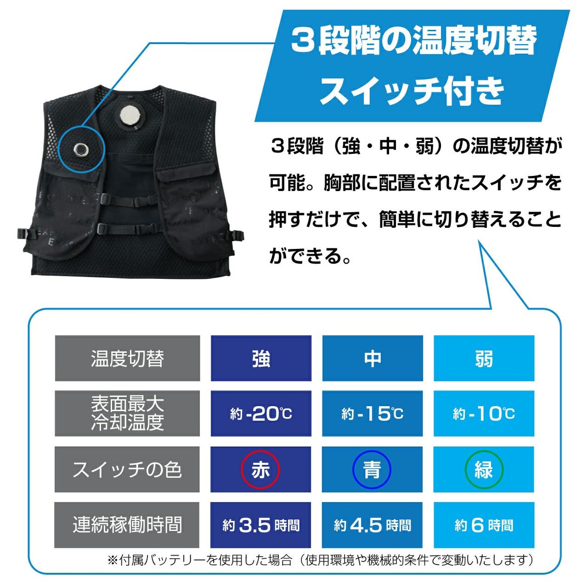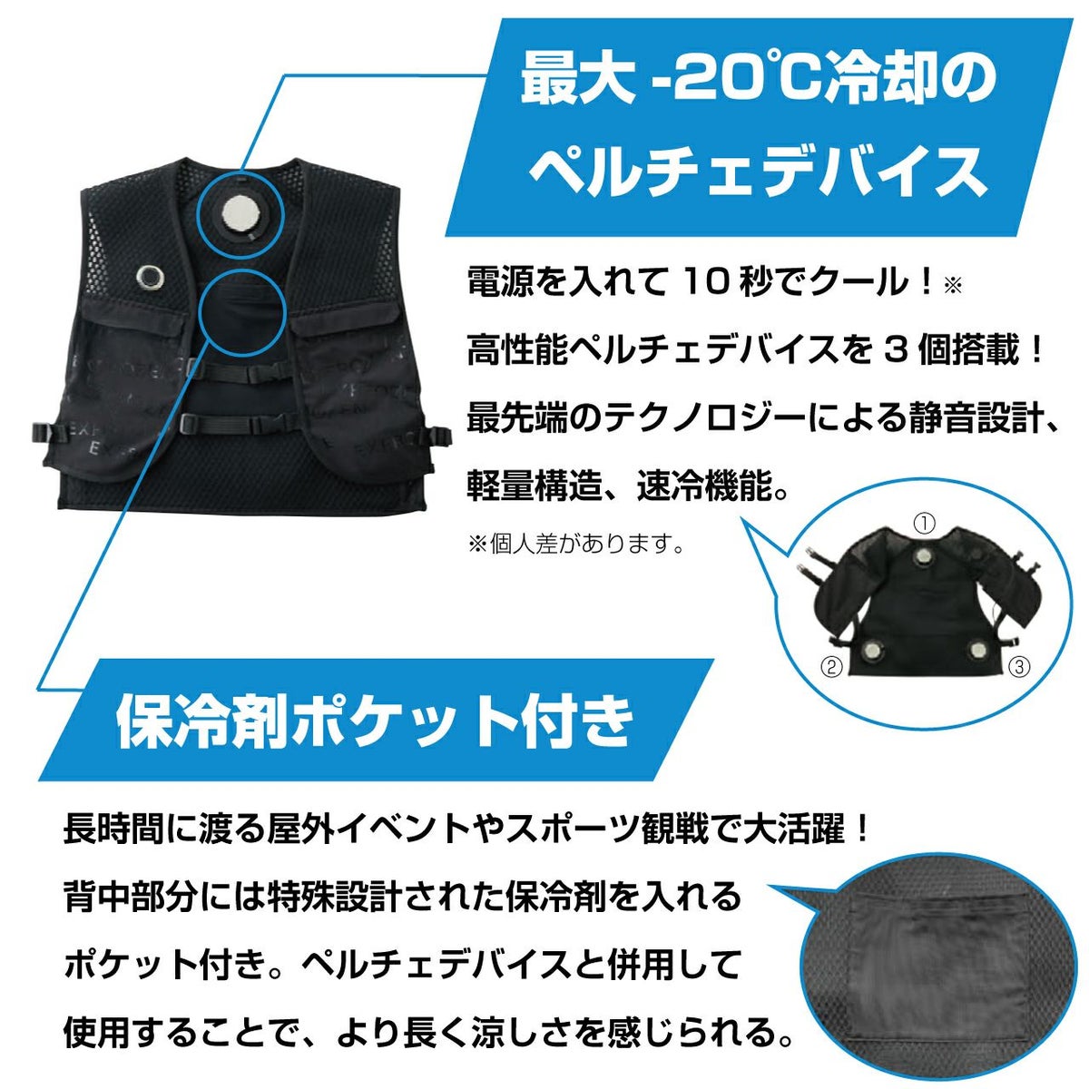 他の画像を見る 表面温度-20度まで冷却可能!新時代の猛暑対策ベスト! フローズンベスト(ベスト・バッテリー)セット ブラック Fサイズ ペルチェ 販売価格 ¥ 33,000 税込 カートに入れる お気に入りに登録する