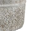グレーの器にブラウンのボタニカル柄が映えるオシャレな植木鉢です。
