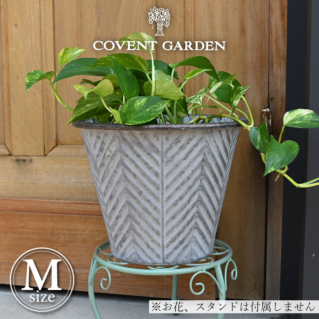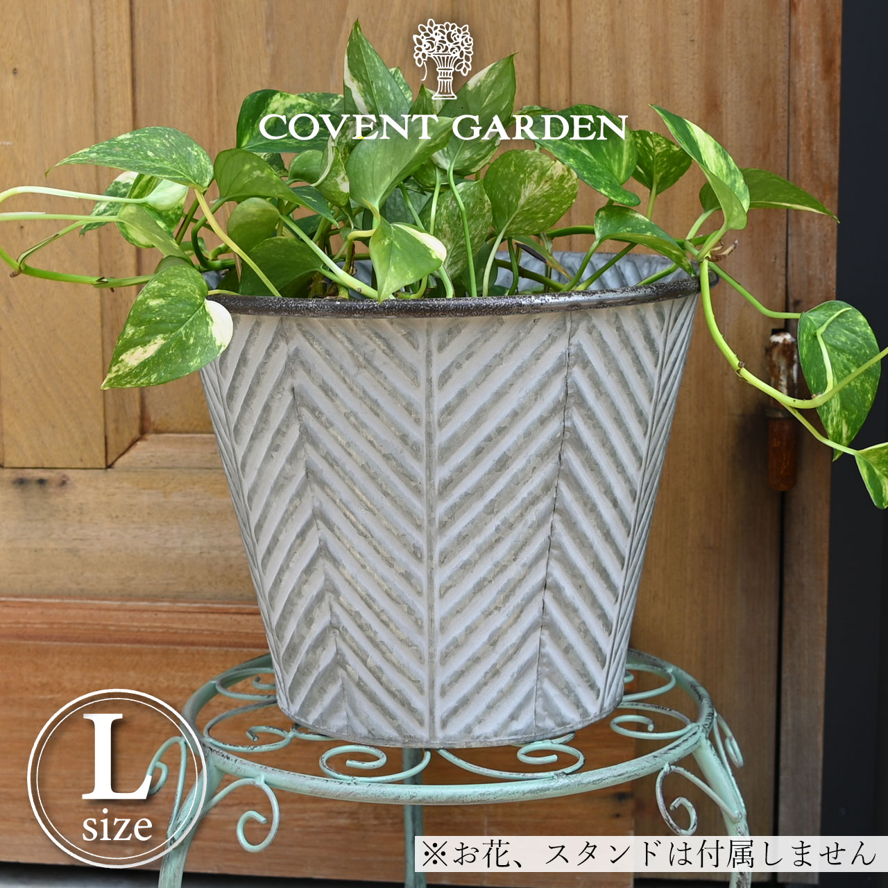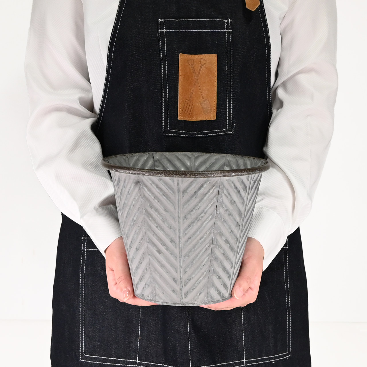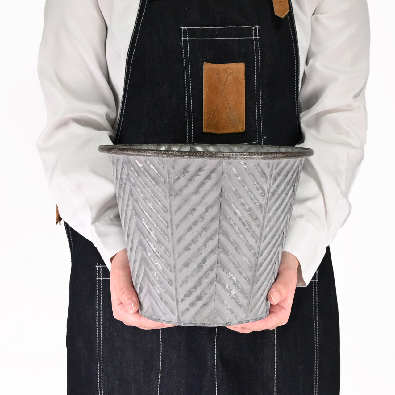 ヘリンボーンの模様が目を引くオシャレな植木鉢です。