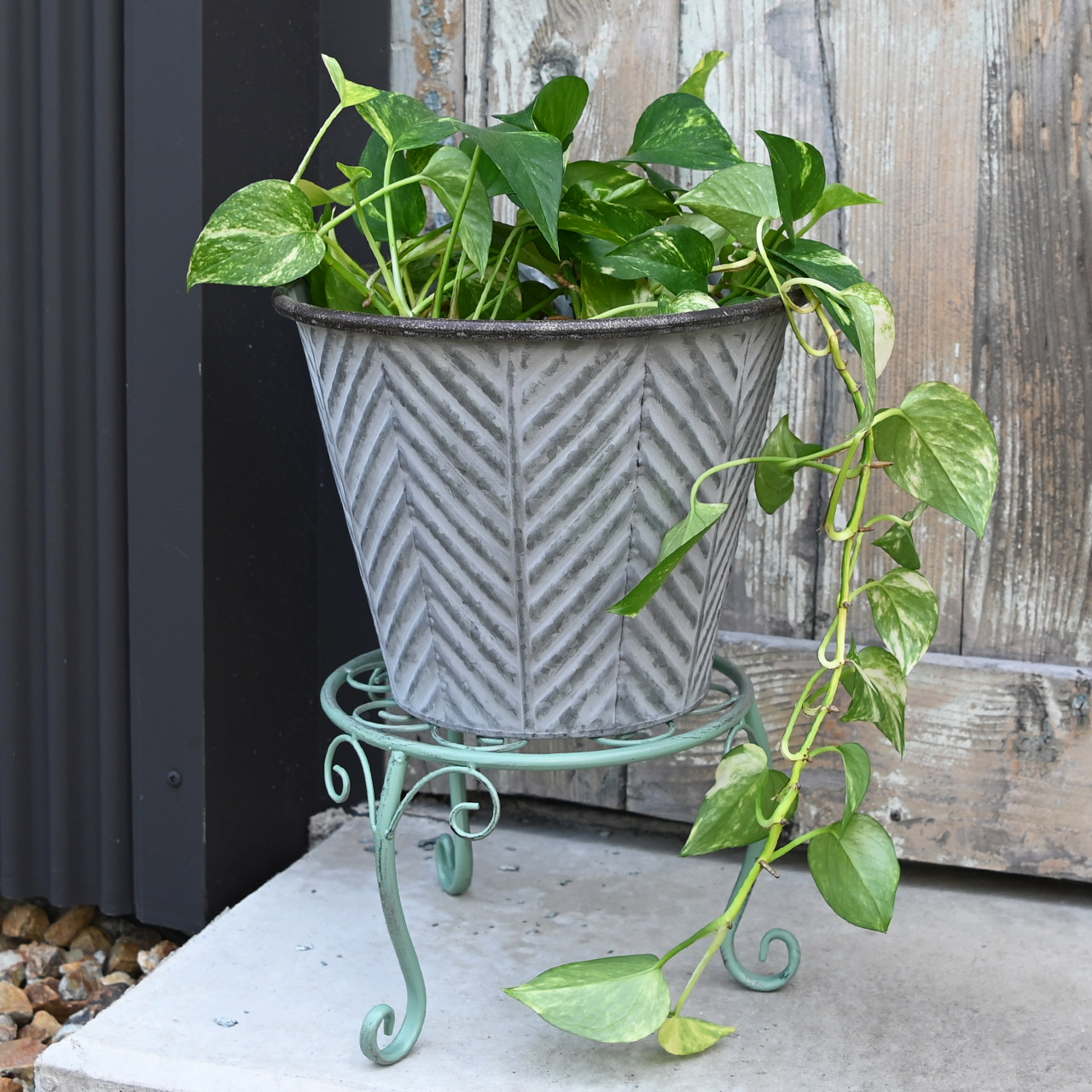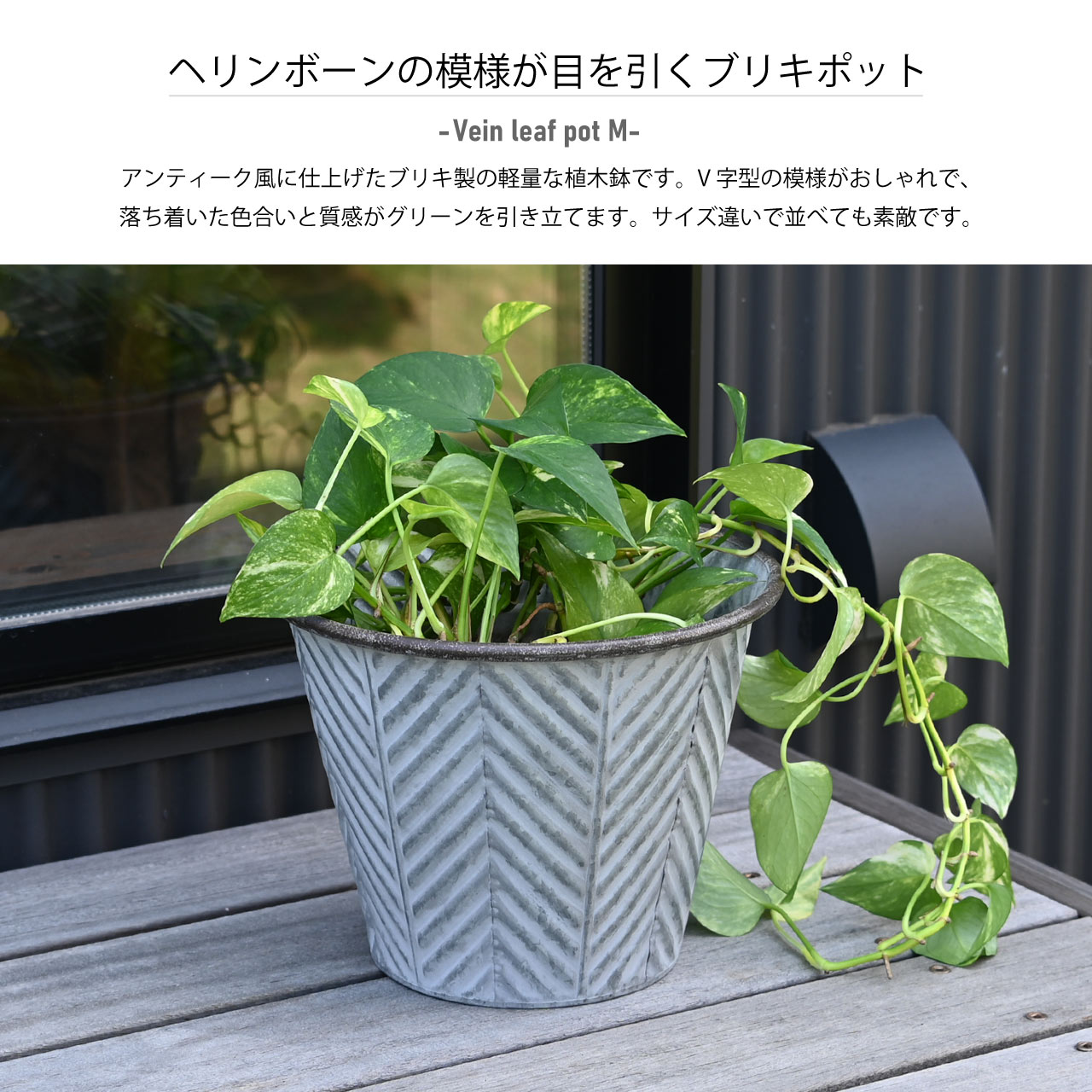 ヘリンボーンの模様が目を引くオシャレな植木鉢です。