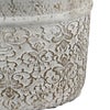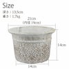 グレーの器にブラウンのボタニカル柄が映えるオシャレな植木鉢です。