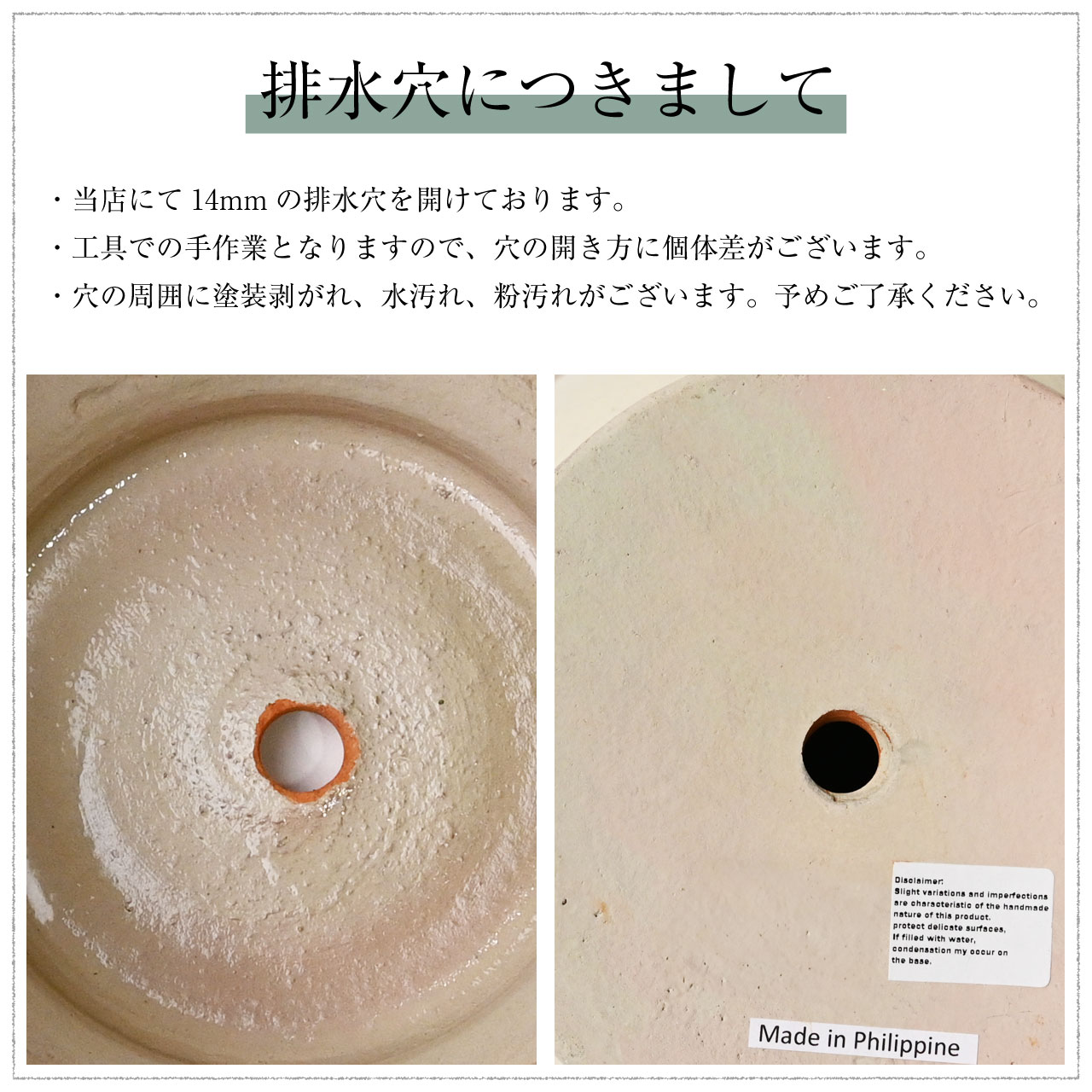 底面は当店にて14mmほどの排水穴を開けておりますので、直接植え付けてご使用いただけます。
