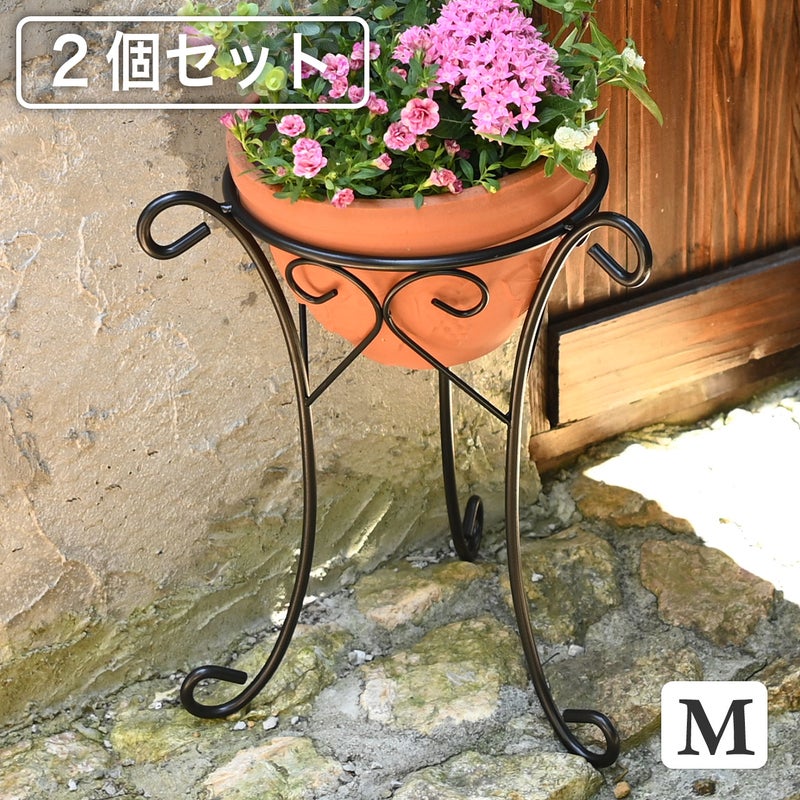 フラワースタンド アイアン製 Mサイズ ブラック 2個セット 花台 屋外 高さ45cm