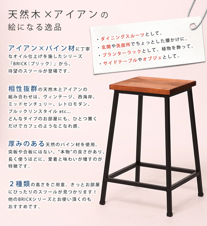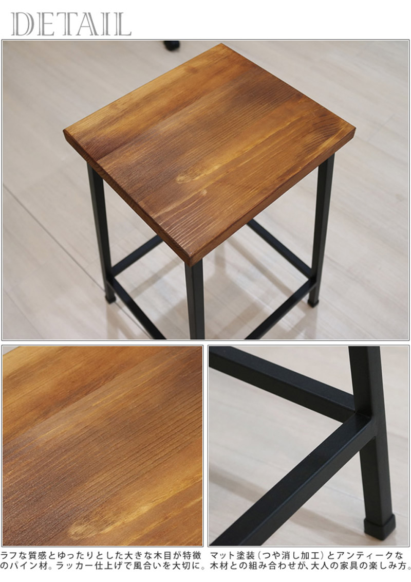 天然木とアイアンを組み合わせた、絵になるスツール。