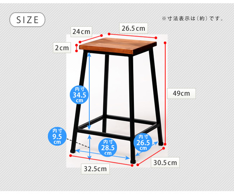 サイズ:本体:幅 約325×奥行 約305×高さ 約490mm、天板サイズ:幅 約265×奥行 約240×約 厚さ20mm