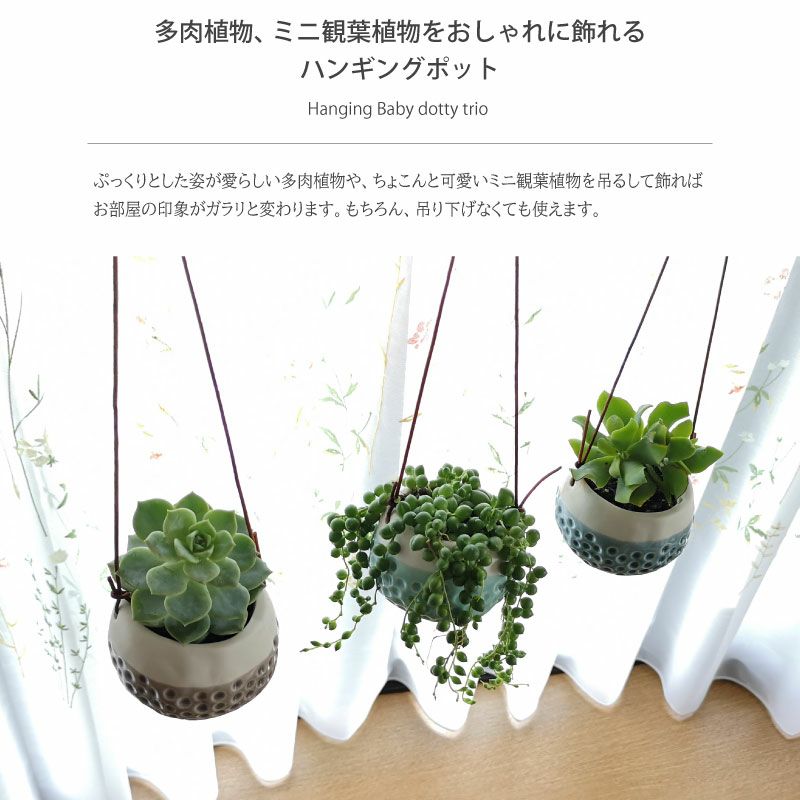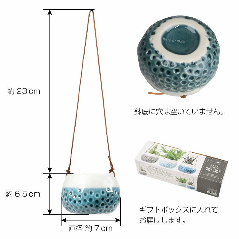 他の画像を見る 多肉植物や、ミニ観葉植物を飾るのにピッタリ!コロンとしたかわいいハンギングポット底穴なし3色セット。 英国ブランド Burgon & Ball ベイビードッティハンギングポット フラワーポット3色セット 植木鉢 鉢底穴なし ギフト 販売価格 ¥ 2,900 税込 詳細を見る お気に入りに登録する