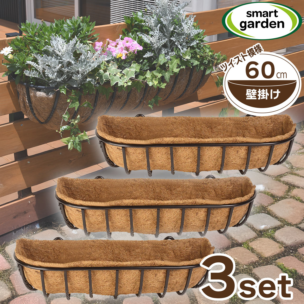 そんな空間を劇的に変えるのが、この直径60cmの壁掛けハンギングバスケットです。