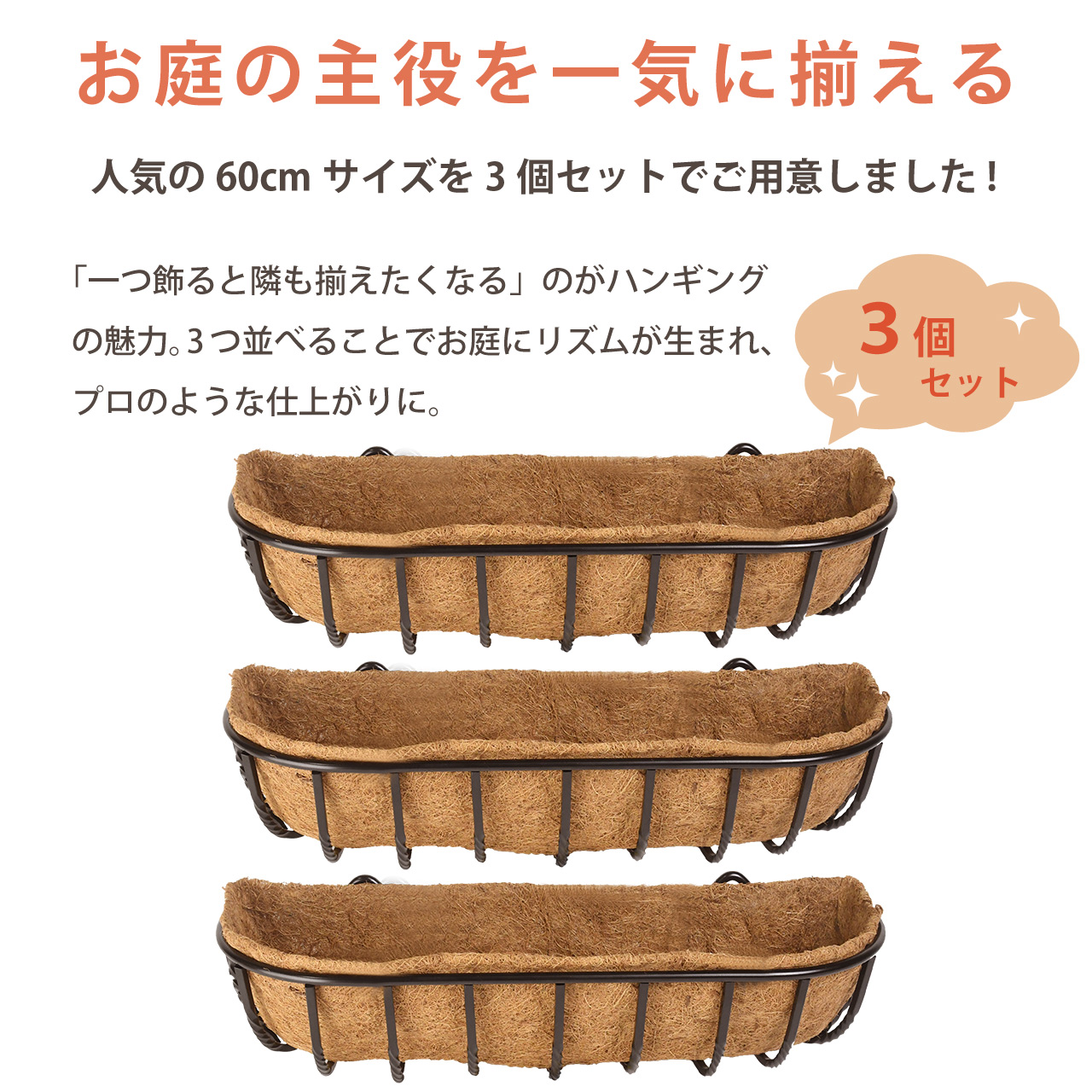 大きすぎず、ちょうどいい「60cm壁掛けハンギング」3個セット