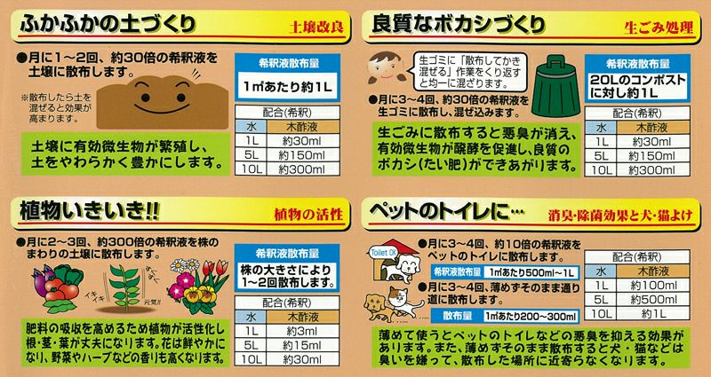 他の画像を見る /使用説明書付き/有害物質・不純物を除去した高純度、高品質の木酢液です。芝生のお庭に♪ 土壌改良資材・活性剤 木酢液 有機酸調整済 4L 販売価格 ¥ 2,800 税込 カートに入れる お気に入りに登録する