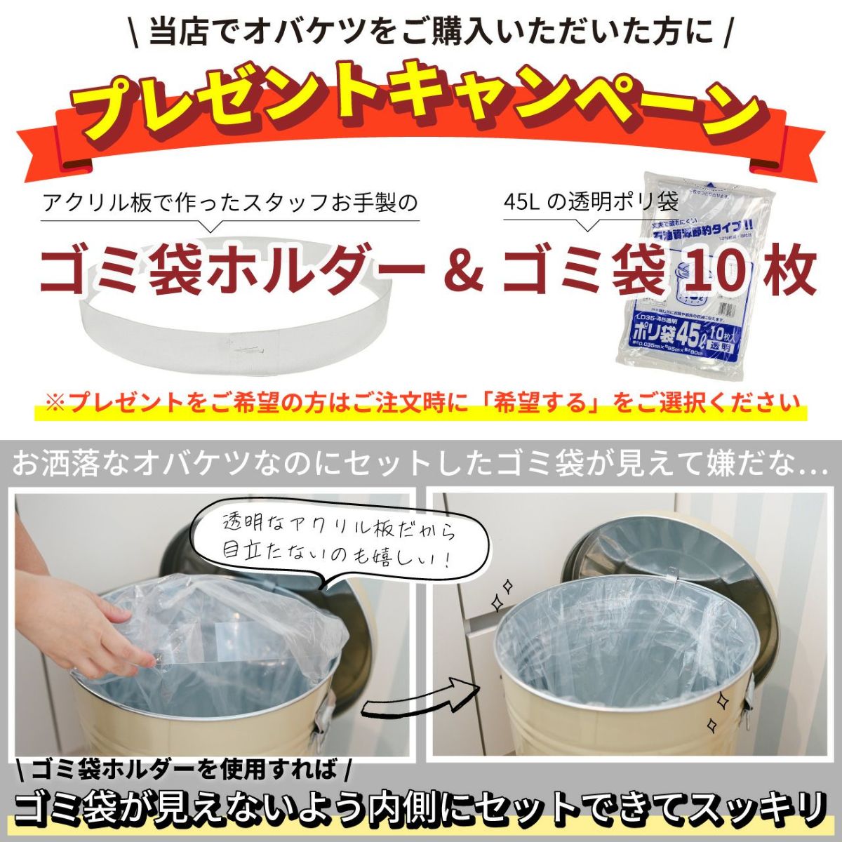 他の画像を見る 毎日使いたくなるおしゃれな見た目で、職人が丁寧に作り上げた高品質なゴミ箱です。 当店オリジナルのゴミ袋ホルダーと45Lのゴミ袋10枚をプレゼント! 【ホルダー・ゴミ袋のおまけ付き】オバケツ 42L キャスター付 日本製 選べる5色 販売価格 ¥ 9,350 税込 詳細を見る お気に入りに登録する