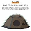 一体型のメインポール1本とサブポール2本で構成された「3POLE HUBシステム」を適用した組み立てやすい大型テントです。
