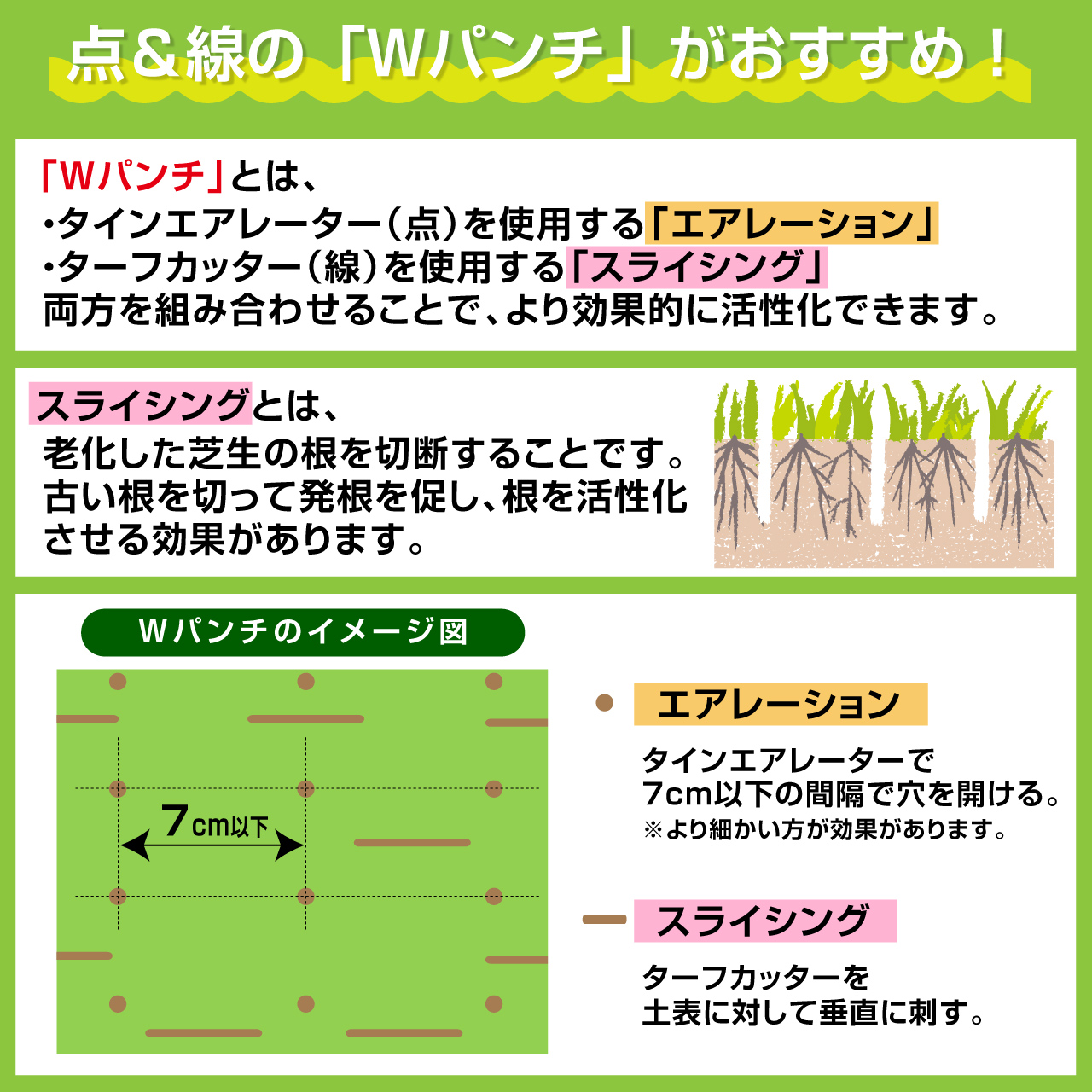 併せて実施することで、より効果的に芝生を健康にすることができます。
