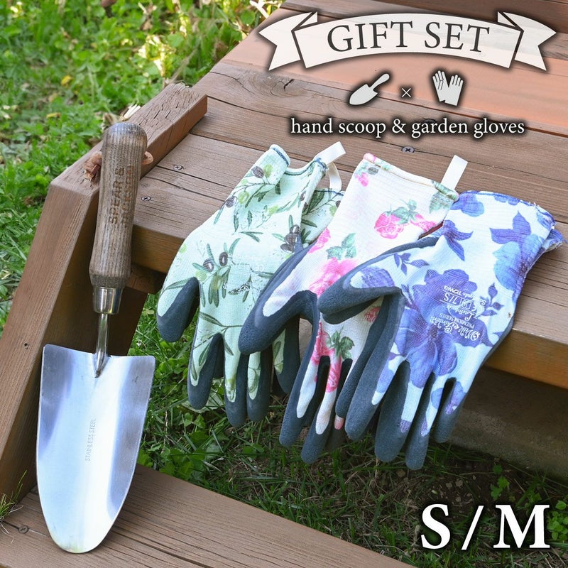 いくつあっても嬉しいグローブと見た目も素敵な本格派ハンドスコップはガーデニング好きな人をきっと笑顔にさせるギフトセットです。