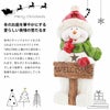 「Welcom」と書かれた看板を持ってお出迎えしてくれる雪だるまのクリスマスオブジェ。