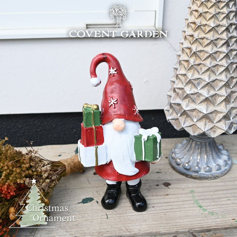プレゼントを抱えた北欧の妖精トムテ(ノーム)のクリスマスオブジェ。