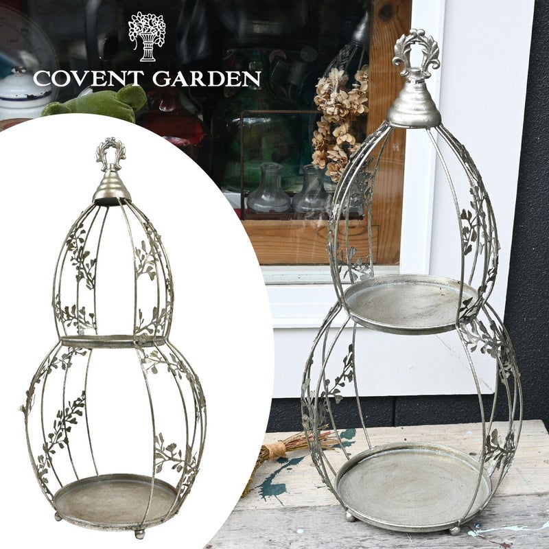 カールしたアイアンの曲線とツタのような装飾がおしゃれな花台です。 アンティーク加工されたシルバーの色合いが、グリーンや小物をよりおしゃれに演出してくれます。 丈夫なスチール製で、玄関・テラス・ベランダなど様々なでご使用頂けます。 もちろん室内で飾ってもお洒落です。 何を飾ろうか、ワクワクしちゃうアイテムです。