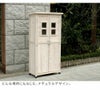 かわいい小窓が付いた両開きの扉は、物の出し入れが楽に行え使い勝手がよく、棚板は簡単に外せ高さのあるものも収納できます。