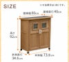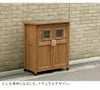 かわいい小窓が付いた両開きの扉は、物の出し入れが楽に行え使い勝手がよく、棚板は簡単に外せ高さのあるものも収納できます。