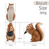 ビスケットと松ぼっくりをかじっているリスの置物です。