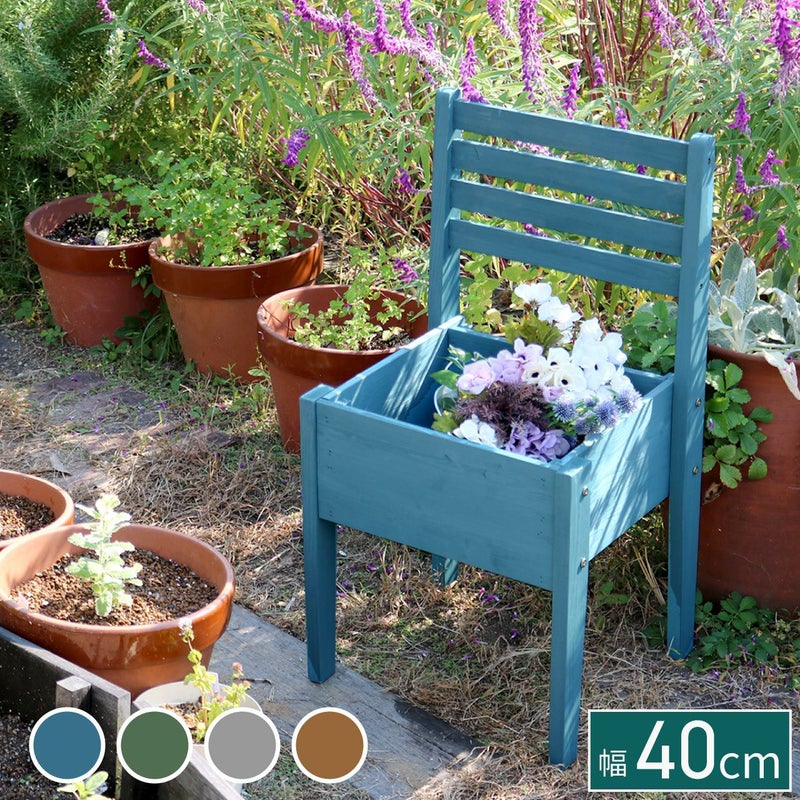 【メーカー直送品 約1週間で発送】天然木製チェア型プランター 幅40cm ブルー ダークグリーン グレー ライトブラウン