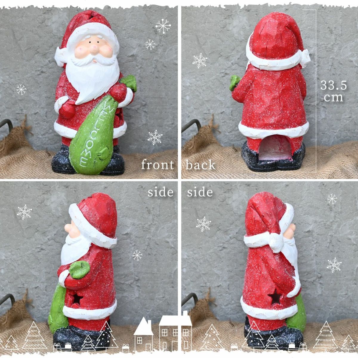 他の画像を見る お庭にクリスマス雑貨を飾って楽しもう! ウェルカムの文字が書かれた袋を持ったサンタさんの置き物 クリスマス オブジェ サンタクロース 高さ33.5cm 飾り 人形 置物 雑貨 かわいい おしゃれ ファイバークレイ 販売価格 ¥ 5,980 税込 カートに入れる お気に入りに登録する