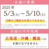 ※北海道、沖縄県、離島へのお届けはできかねます。お断りのご連絡をさせていただきます。
