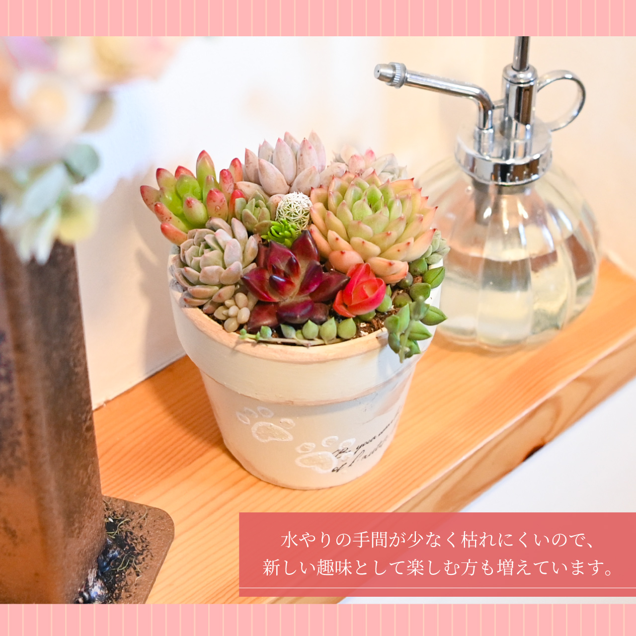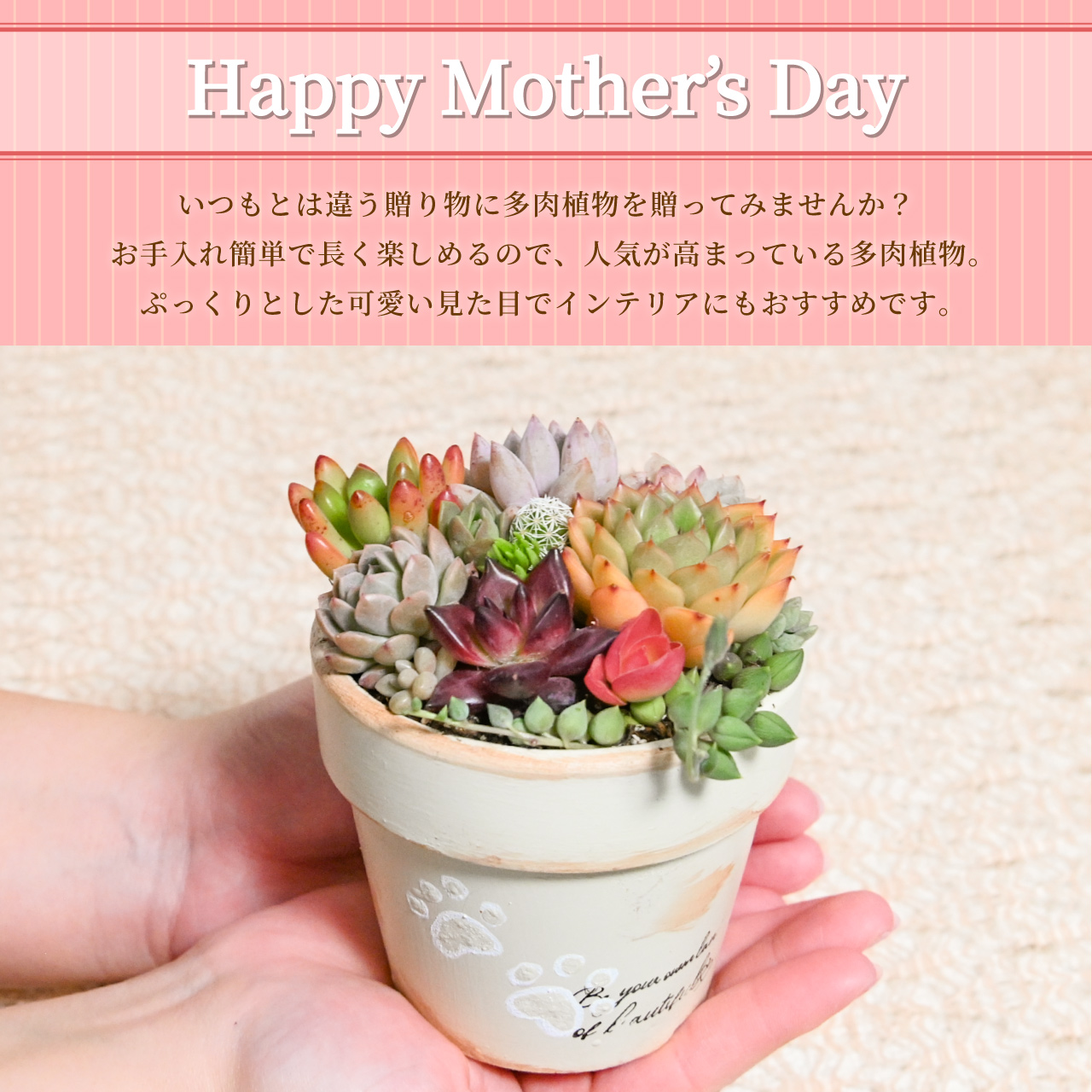※多肉植物のお手入れ方法を記載したカードをお付けしております。多肉植物の育て方が分からないお母さんにも安心してお贈りいただけます。