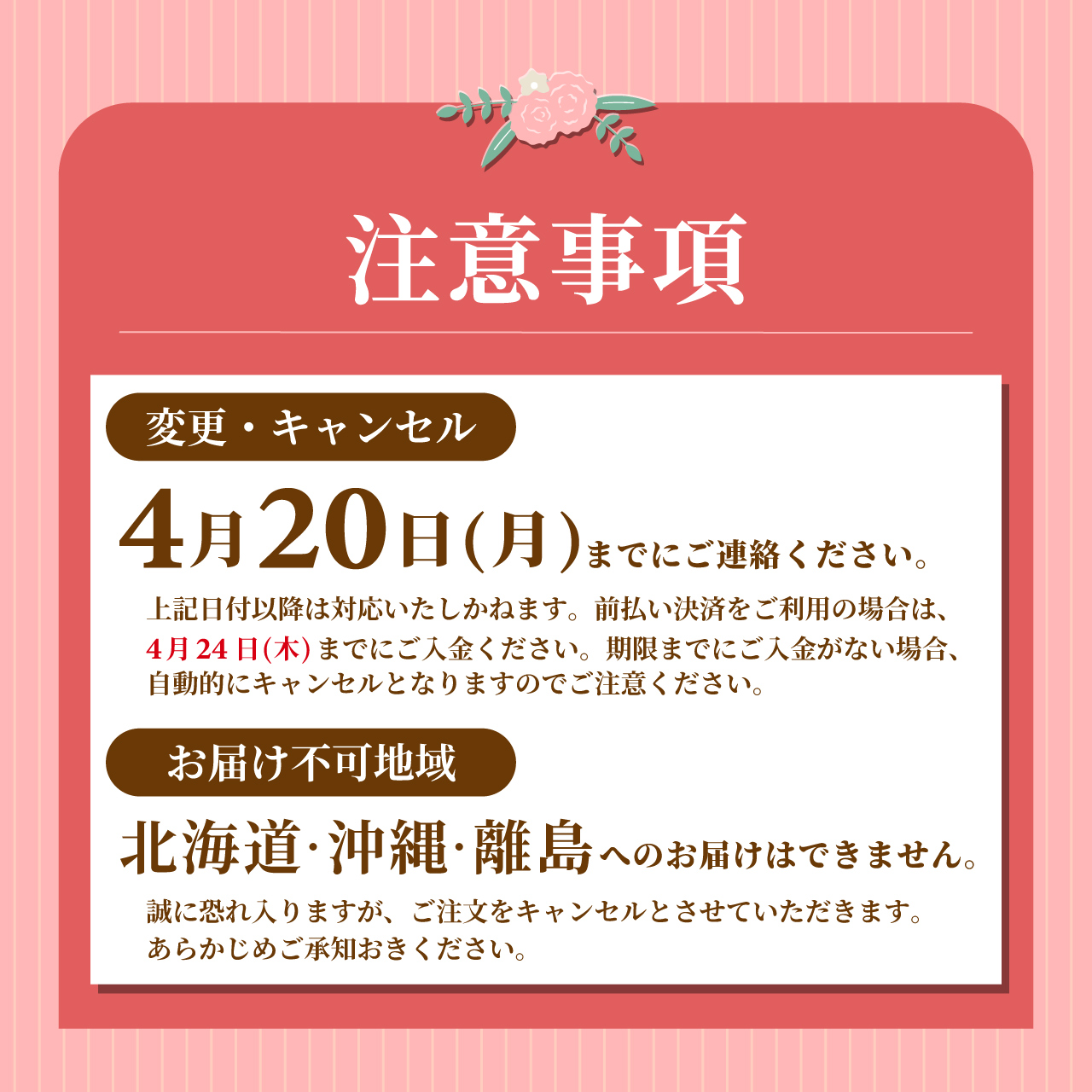 ※当社規定または天候・道路事情など、やむを得ない事情により、お届け時期が予定より前後する場合がございます。
