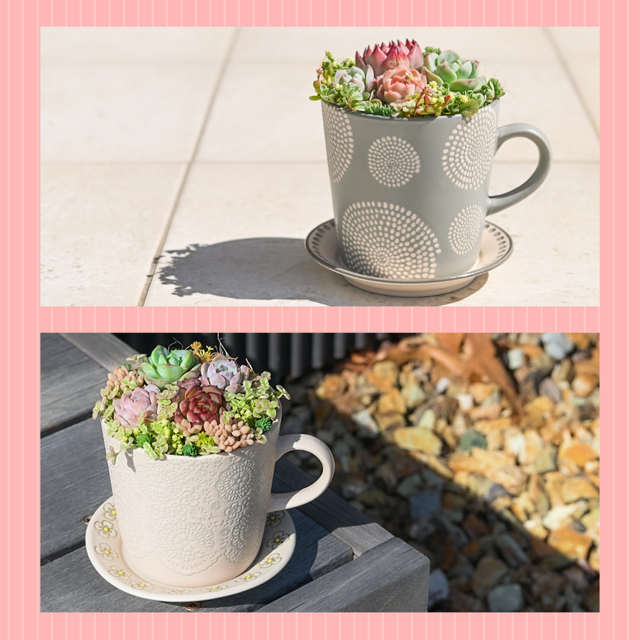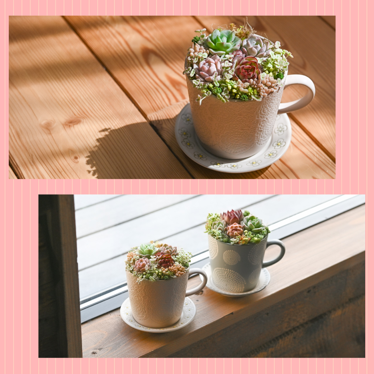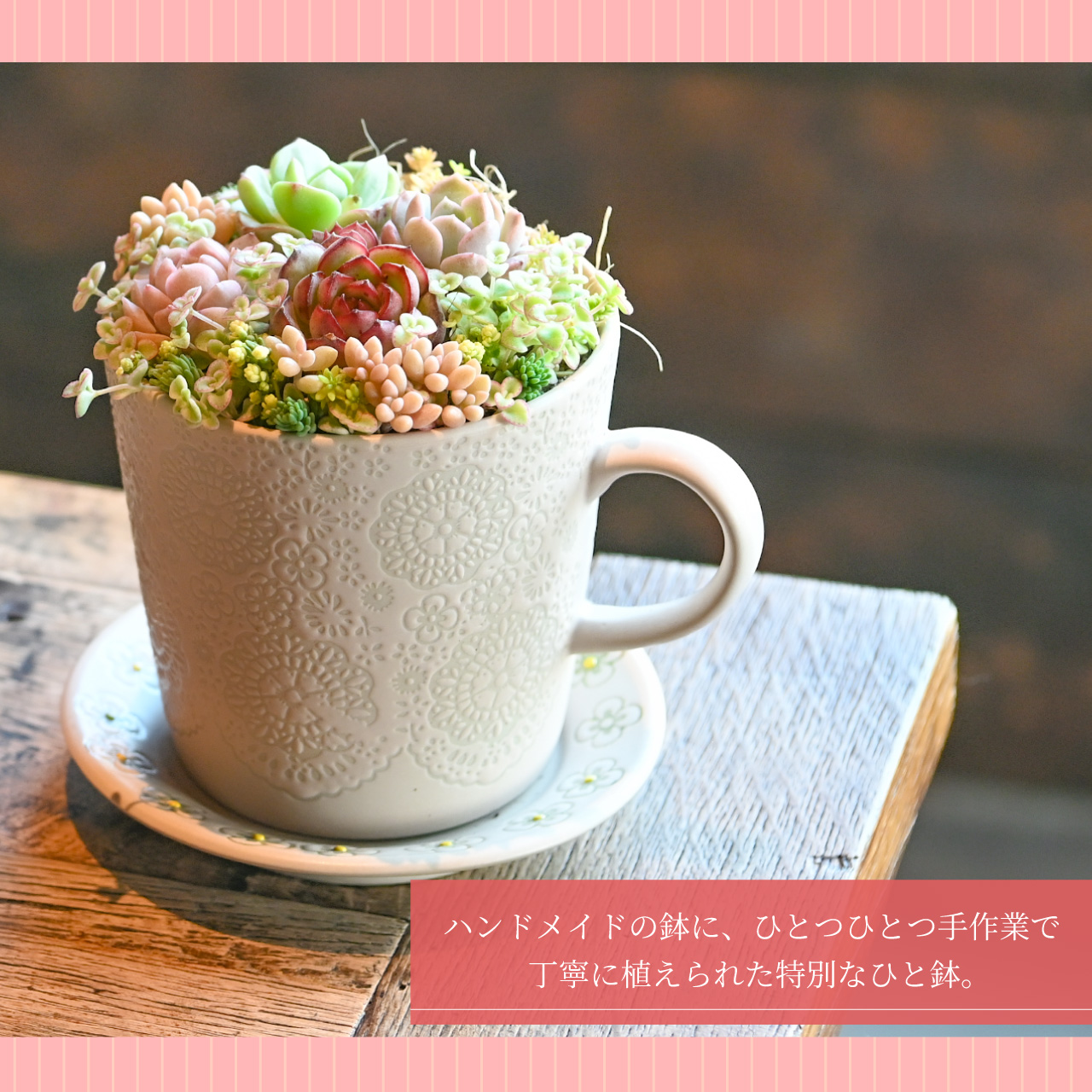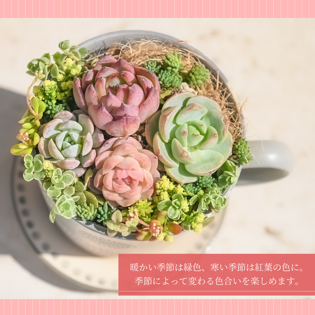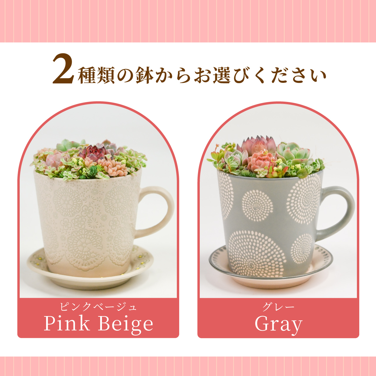 多肉寄せ植え 選べる鉢 ピンクベージュ グレー 多肉植物 カップ&ソーサー ギフト 母の日 プレゼント ラッピング 2026年