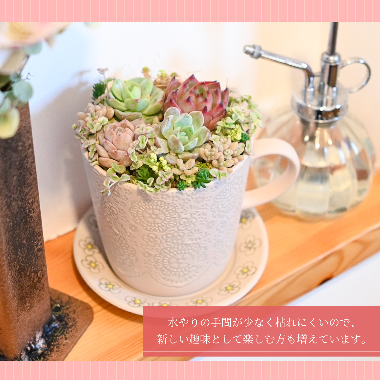 お手入れ簡単で枯れにくく、長く楽しめるので人気が高まっている多肉植物。