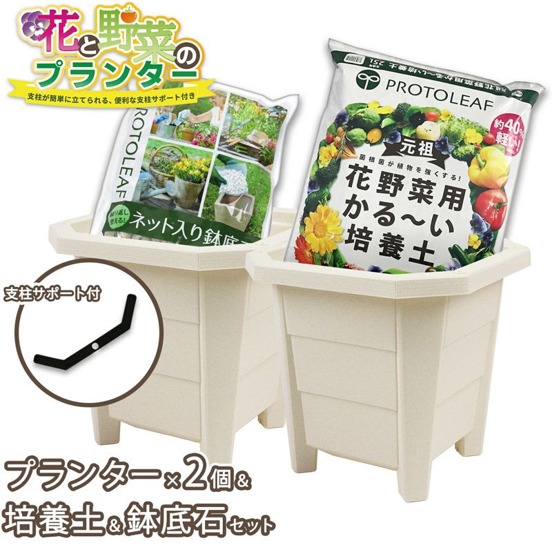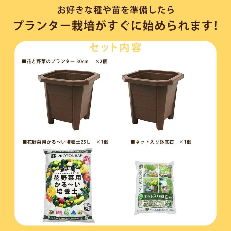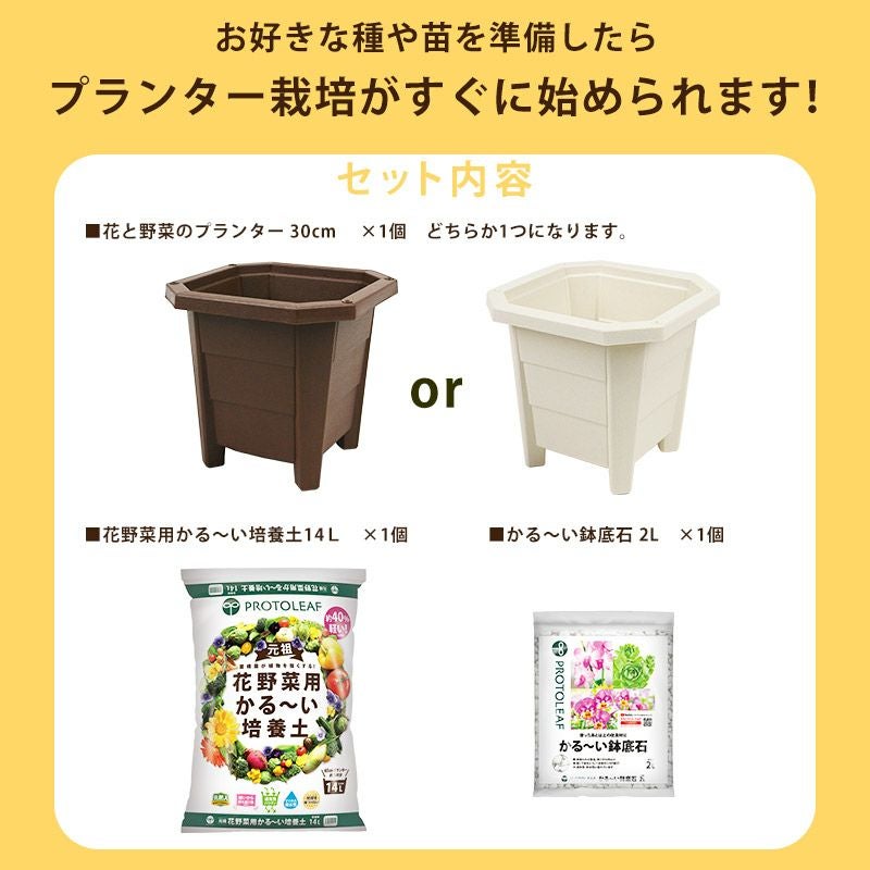 プランター園芸3点セット ブラウン ホワイト 30cmプランター1個&プロトリーフ培養土14L&鉢底石2L