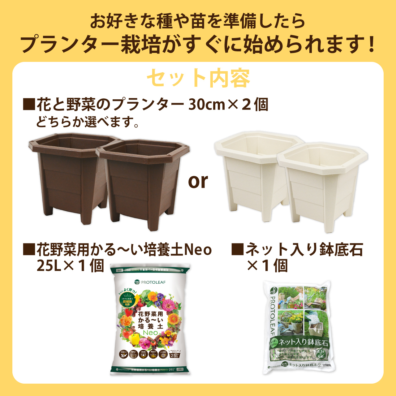初心者でもプランター栽培がすぐに始められるよう、必要なアイテムをセットにしました。