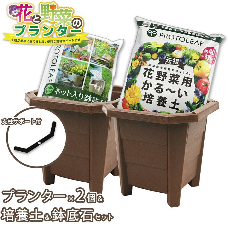 プランター2個・培養土・鉢底石の4点セットです。