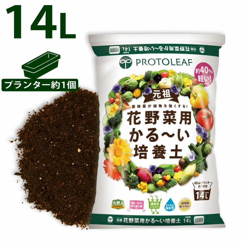 花野菜用かる~い培養土は主にココヤシピートでできていることから、とても軽く、はじめてガーデニングをされる方でも取扱いが楽な培養土です。