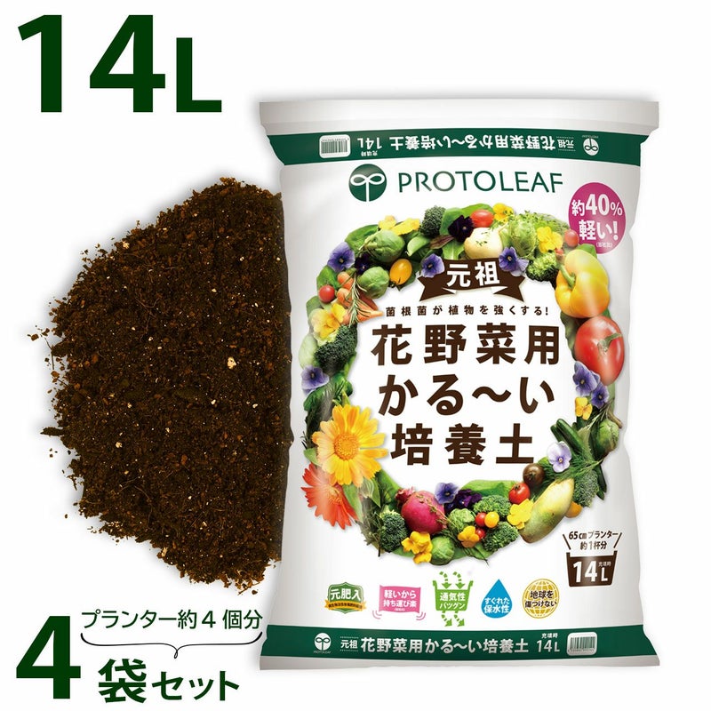 花野菜用かる~い培養土は主にココヤシピートでできていることから、とても軽く、はじめてガーデニングをされる方でも取扱いが楽な培養土です。