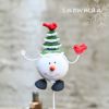 丸いシルエットにツリーの帽子が可愛らしいスノーマン、サンタクロース、トナカイのクリスマスピックです。