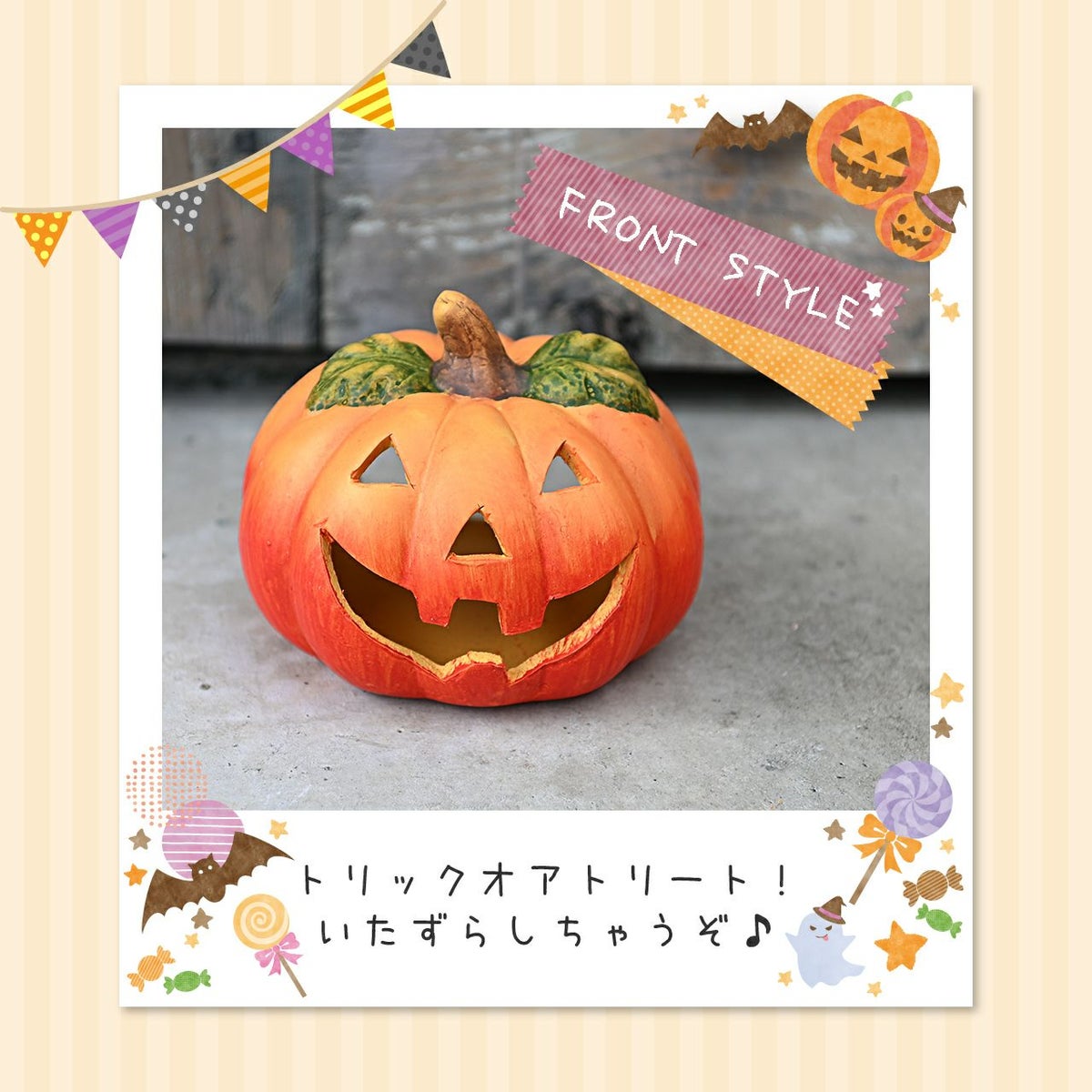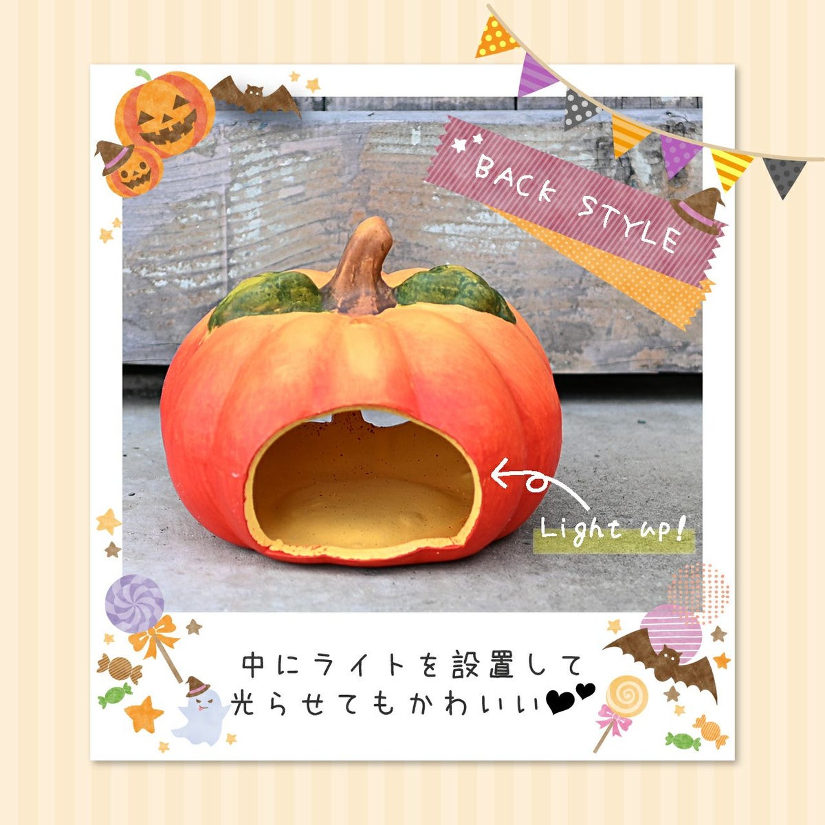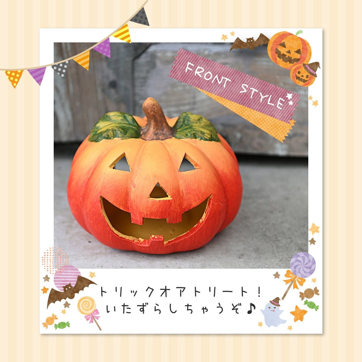 他の画像を見る ハロウィンのお庭を案内します♪ ハロウィン パンプキン リーフS ジャックオーランタン カボチャ オーナメント 置物 雑貨 インテリア ディスプレイ ギフト 販売価格 ¥ 1,680 税込 詳細を見る お気に入りに登録する