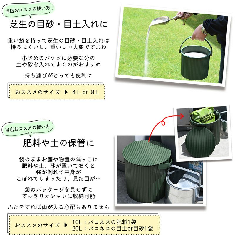 他の画像を見る 安心の日本製!オシャレに簡単収納 ガーデニングに最適な座れる蓋つきバケツ♪♪ ガーデンツールバケット グリーン 緑 8L フタつきバケツ 販売価格 ¥ 1,800 税込 カートに入れる お気に入りに登録する