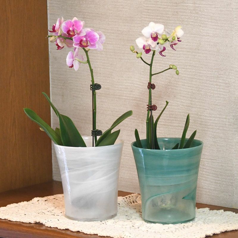 他の画像を見る 洋ランや胡蝶蘭にお勧めな半透明のガラスポット IVYLINE フレアード オーキッド プランター 鉢 内径約13.5cm 鉢底穴なし ティール アクア 選べる2種類 緑 白 ギフト 販売価格 ¥ 3,980 税込 詳細を見る お気に入りに登録する
