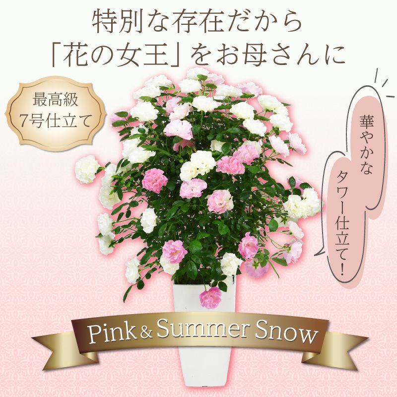 他の画像を見る 大好きなお母さんの笑顔が見たいから、 日頃の感謝の気持ちをお花に込めて贈ります。 7号鉢 2色植え 幻の薔薇 ピンク&サマースノー 母の日プレゼント用ラッピング付 2025年 花 ローズ 鉢植え ハルガスミ つる薔薇 花鉢 送料無料 販売価格 ¥ 8,800 税込 販売を終了しました。 在庫切れ 詳細を見る お気に入りに登録する