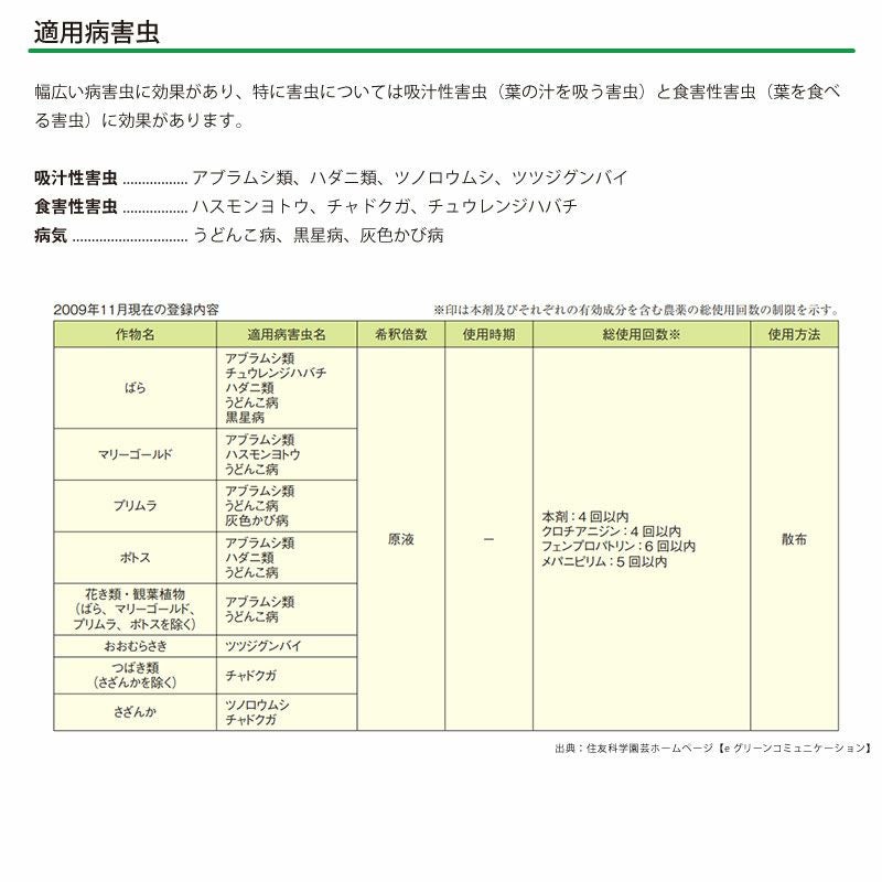 他の画像を見る ばらの黒星病やうどんこ病に優れた効果 うすめずそのまま使える 住友化学園芸 殺菌剤 マイローズ殺菌スプレー 950ml 2本セット KINCHO園芸 販売価格 ¥ 2,530 税込 カートに入れる お気に入りに登録する