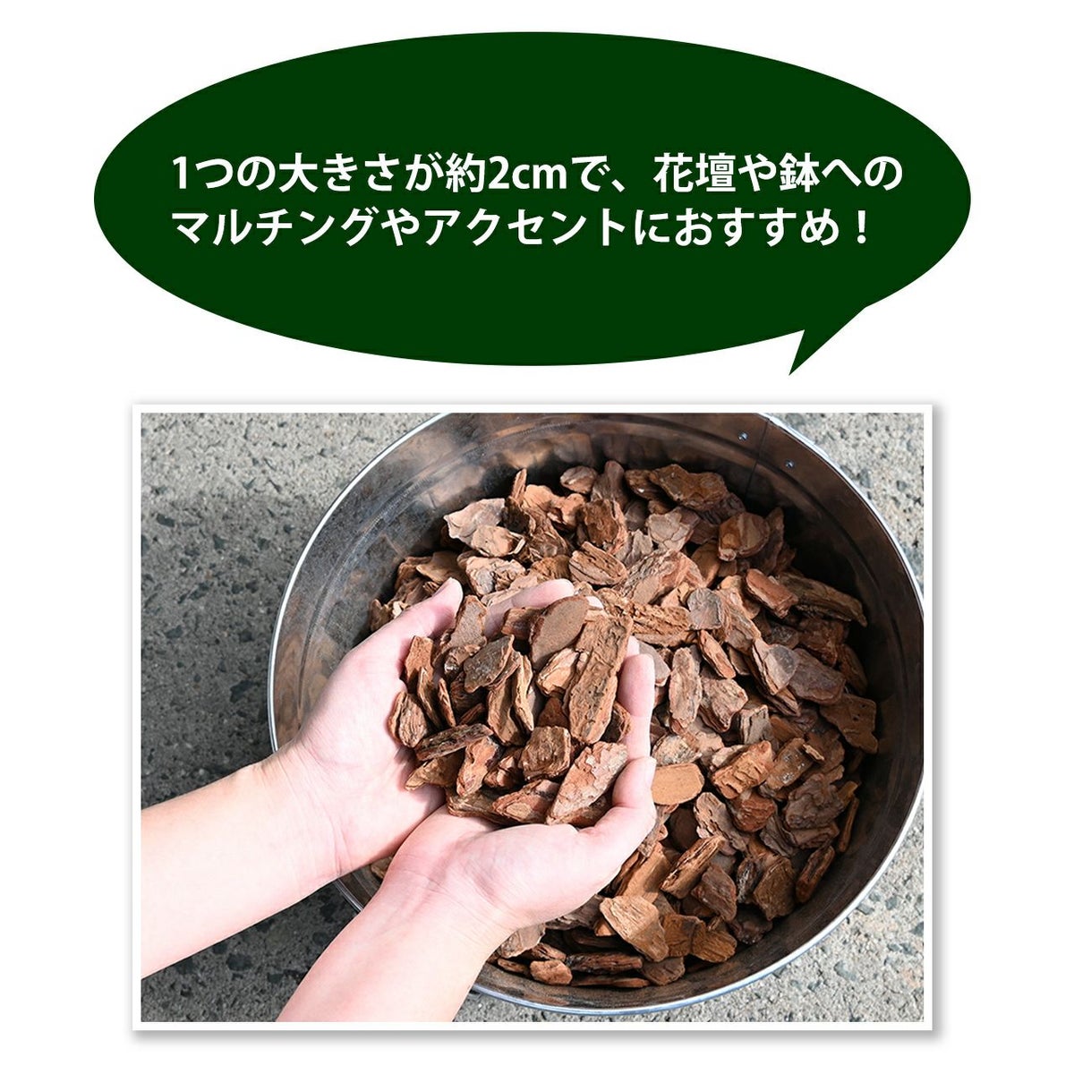 他の画像を見る 装飾はもちろんマルチング材として雑草防止・泥跳ねによる病気の予防に プロトリーフ バークチップ Sサイズ 12L 1袋 販売価格 ¥ 2,380 税込 カートに入れる お気に入りに登録する