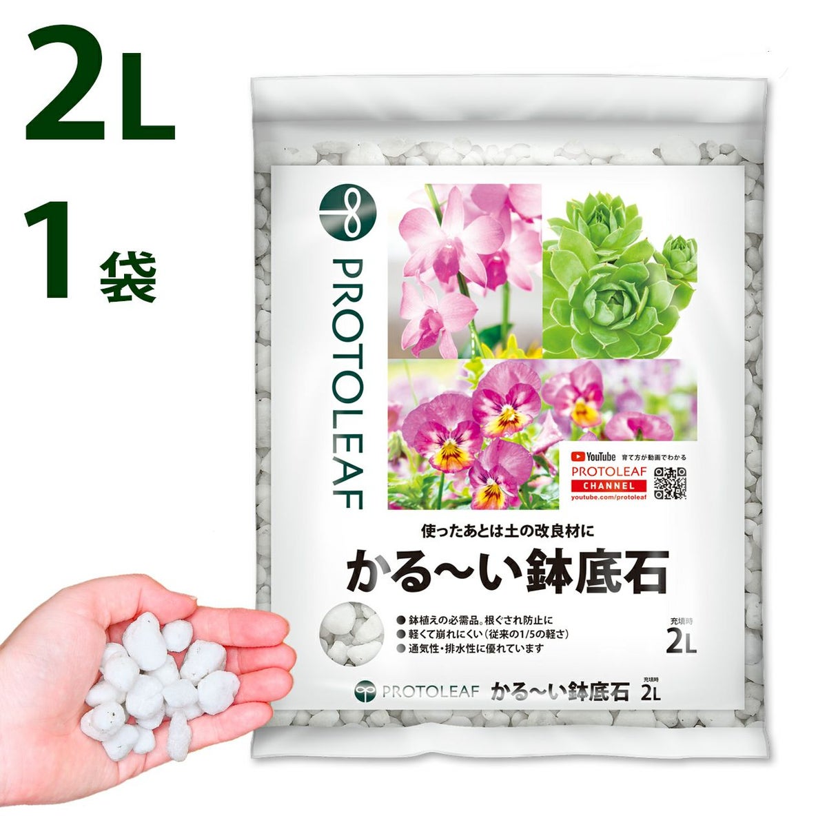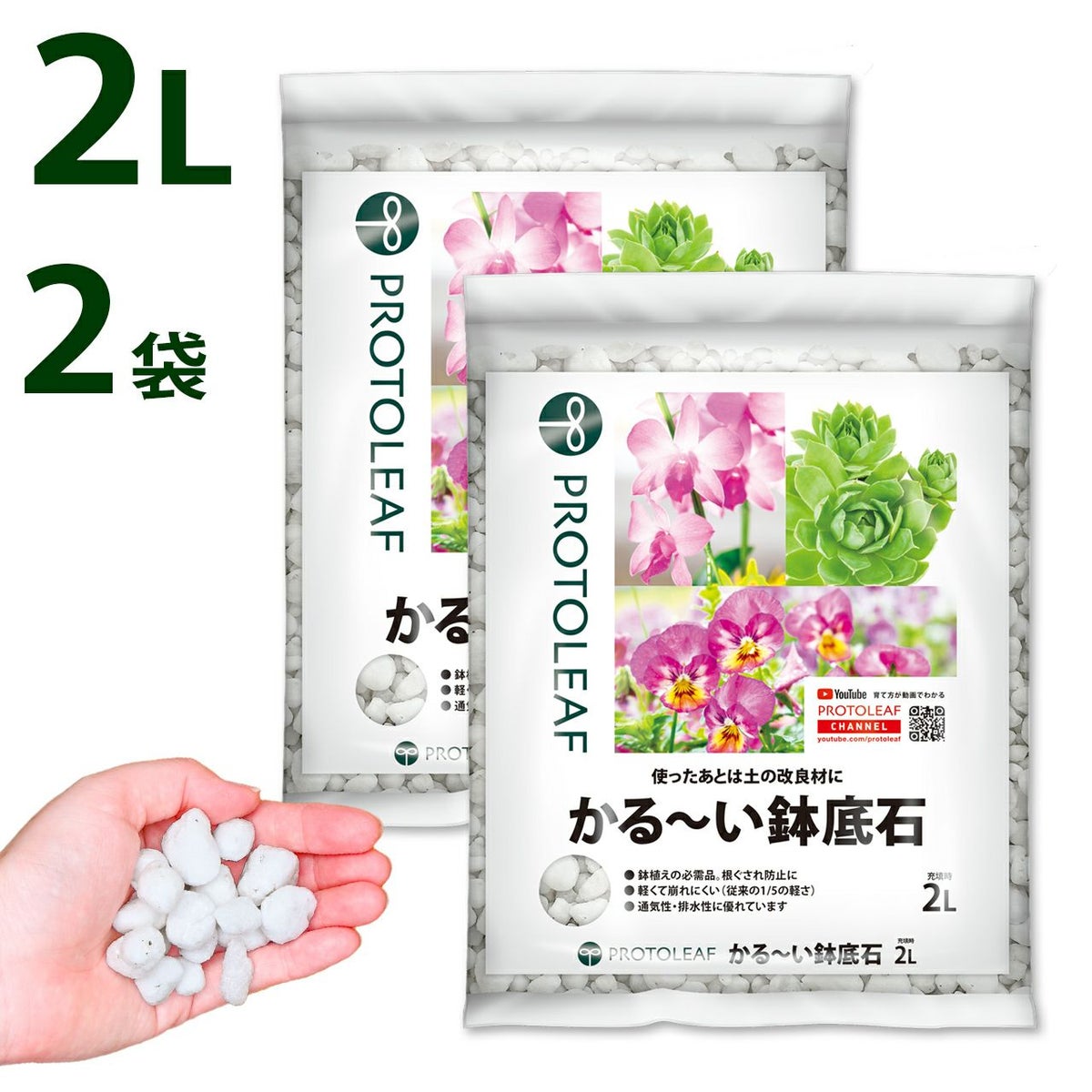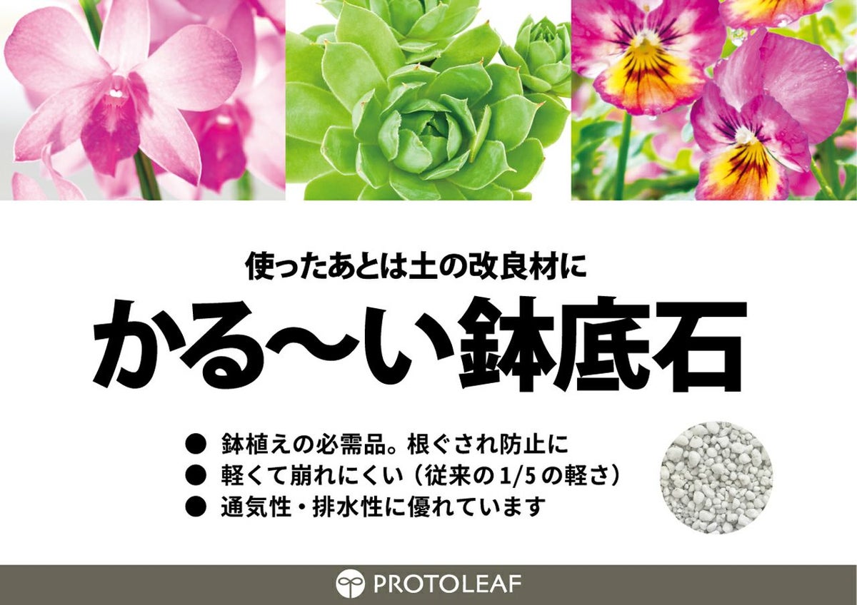 他の画像を見る 崩れにくく繰り返し使える鉢底石!使ったあとは土の改良材としても活用できます プロトリーフ かる~い鉢底石 2L×2袋セット 販売価格 ¥ 1,650 税込 カートに入れる お気に入りに登録する