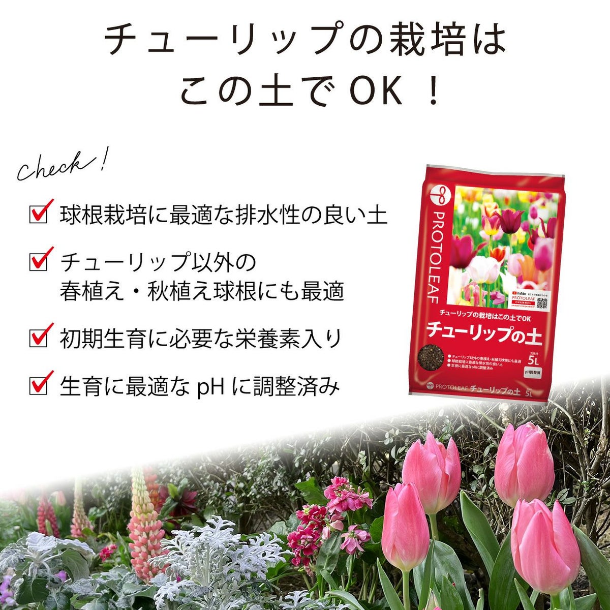 他の画像を見る チューリップ以外の春植え・秋植え球根にも最適 プロトリーフ チューリップの土 5L 1袋 培養土 用土 球根 ダリア 販売価格 ¥ 1,480 税込 カートに入れる お気に入りに登録する