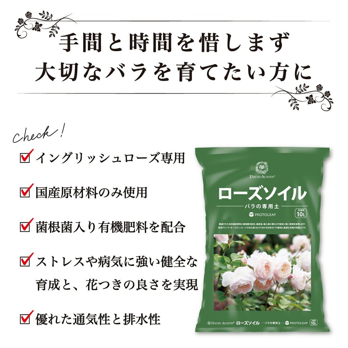 他の画像を見る 手間と時間を惜しまず大切なバラを育てたい方に。イングリッシュローズ専用培養土。 プロトリーフ ローズソイル 10L 5袋セット デビットオースチン 培養土 バラの土 用土 まとめ買い 販売価格 ¥ 6,400 税込 カートに入れる お気に入りに登録する